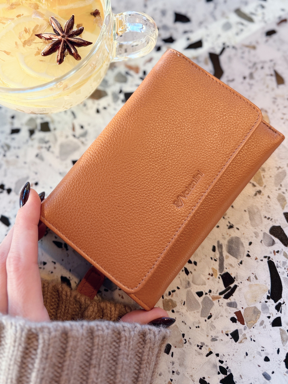 Naturalna skóra bydlęca, z której wykonany jest portfel Valentini, z czasem nabiera pięknej, unikalnej patyny. Każdy portfel staje się dzięki temu wyjątkowy – tak jak jego właścicielka.