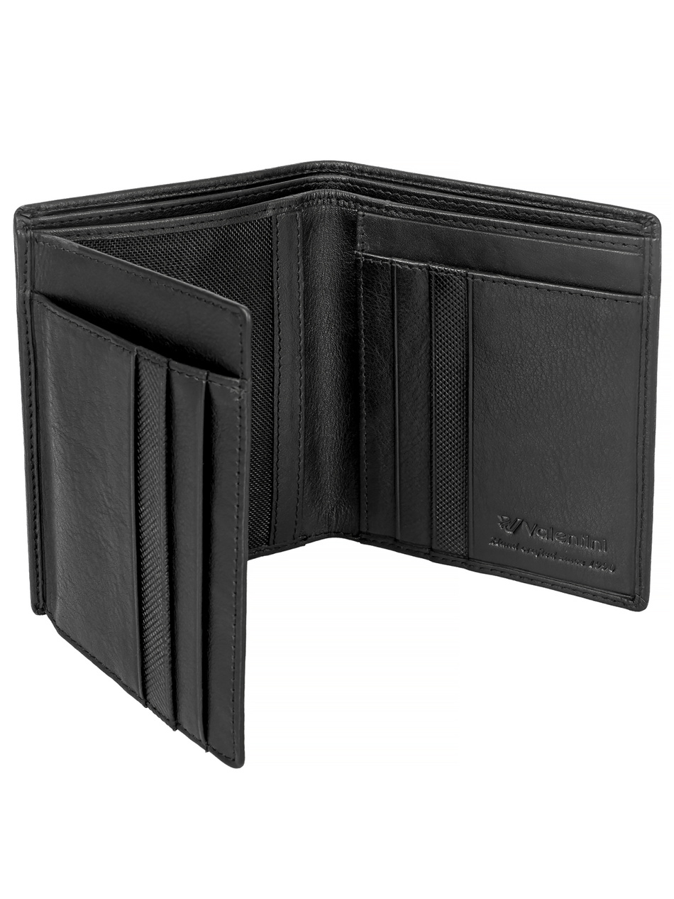 Męski portfel o układzie pionowym z kolekcji Trophy od Valentini wymiarów: 9,5 x 12,5 cm. Wewnątrz produkt posiada 5 miejsc na dokumenty, 6 na karty oraz 2 przegrody na banknoty. Na froncie znajduje się wytłoczone logo Valentini oraz oraz pasek z delikatną fakturą który nadaje elegancji oraz klasyki. Portfel został wykonany z wysokiej jakości skóry naturalnej.