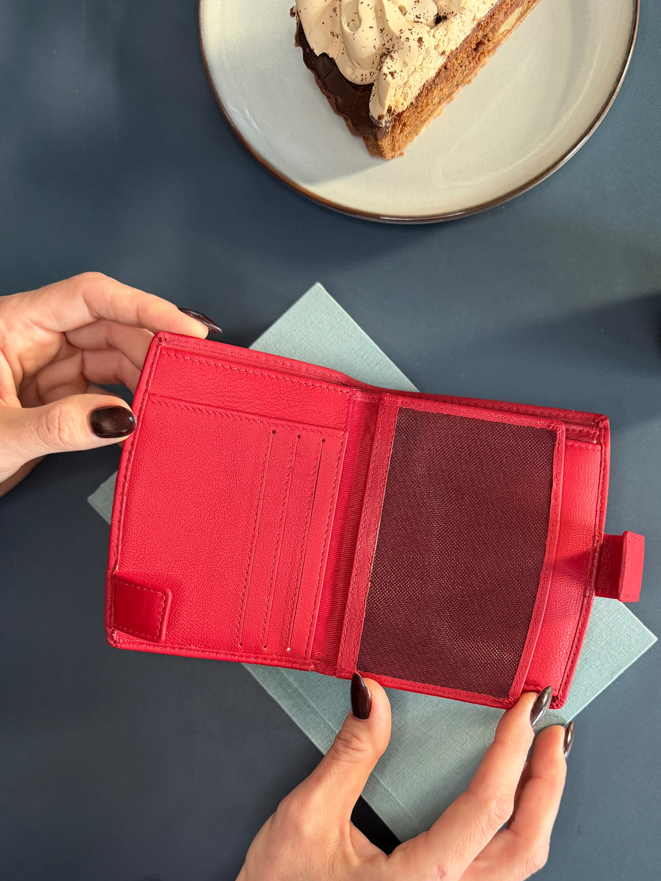 - Rozbudowany, średniej wielkości portfel damski wykonany z miękkiej skóry cielęcej.