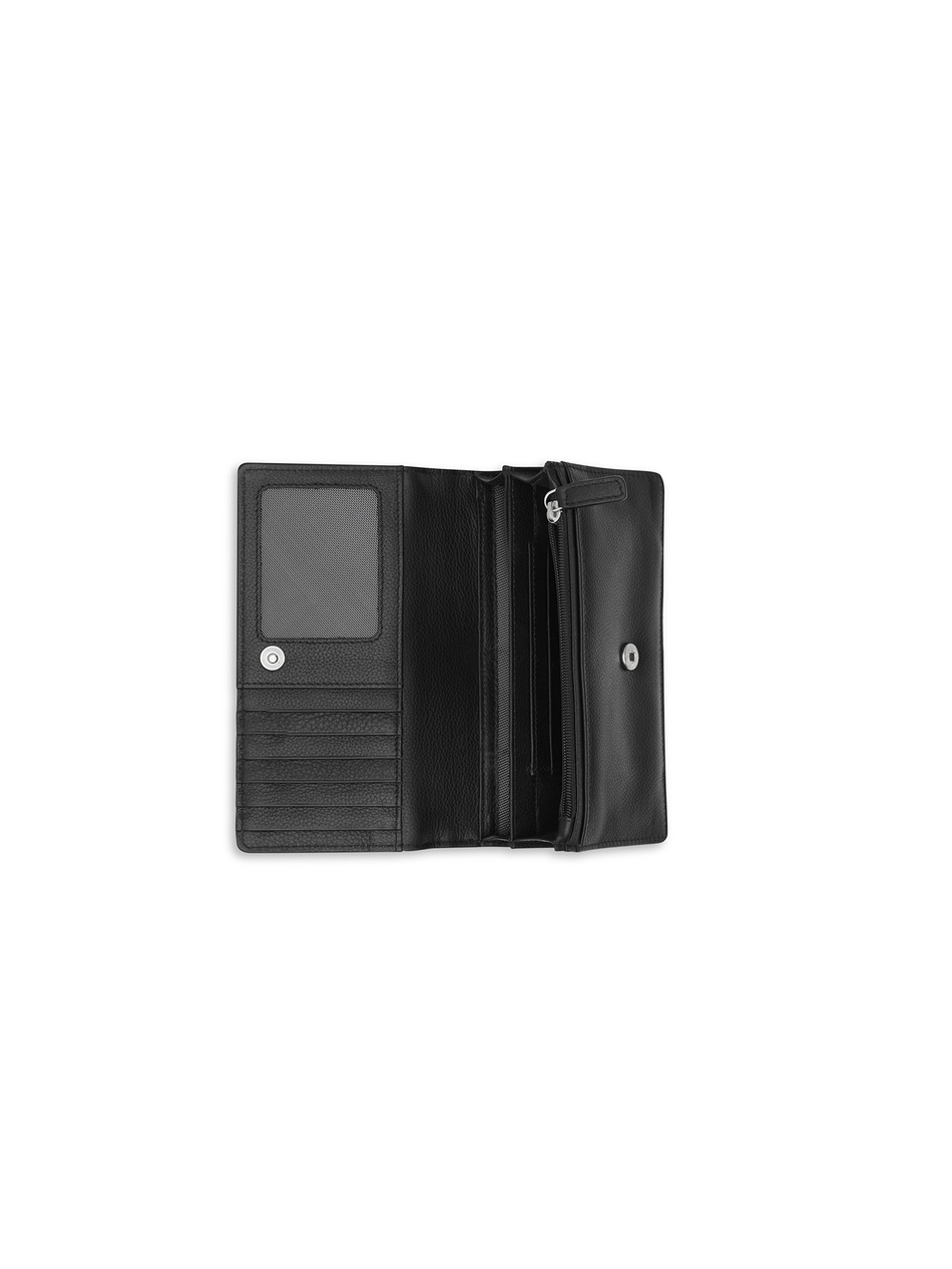A kiedy otworzysz ten kompaktowy cud techniki o wymiarach 16,5 x 9,5 cm, natrafisz na prawdziwe bogactwo funkcji. Jest aż 11 miejsc na karty kredytowe, 4 kieszonki na dokumenty i 2 przegrody na banknoty. Ale to jeszcze nie koniec – dodatkowa zewnętrzna przegroda zapinana na zamek i specjalne miejsce na bilon również na zamek zapewniają dodatkowe miejsce i bezpieczeństwo.