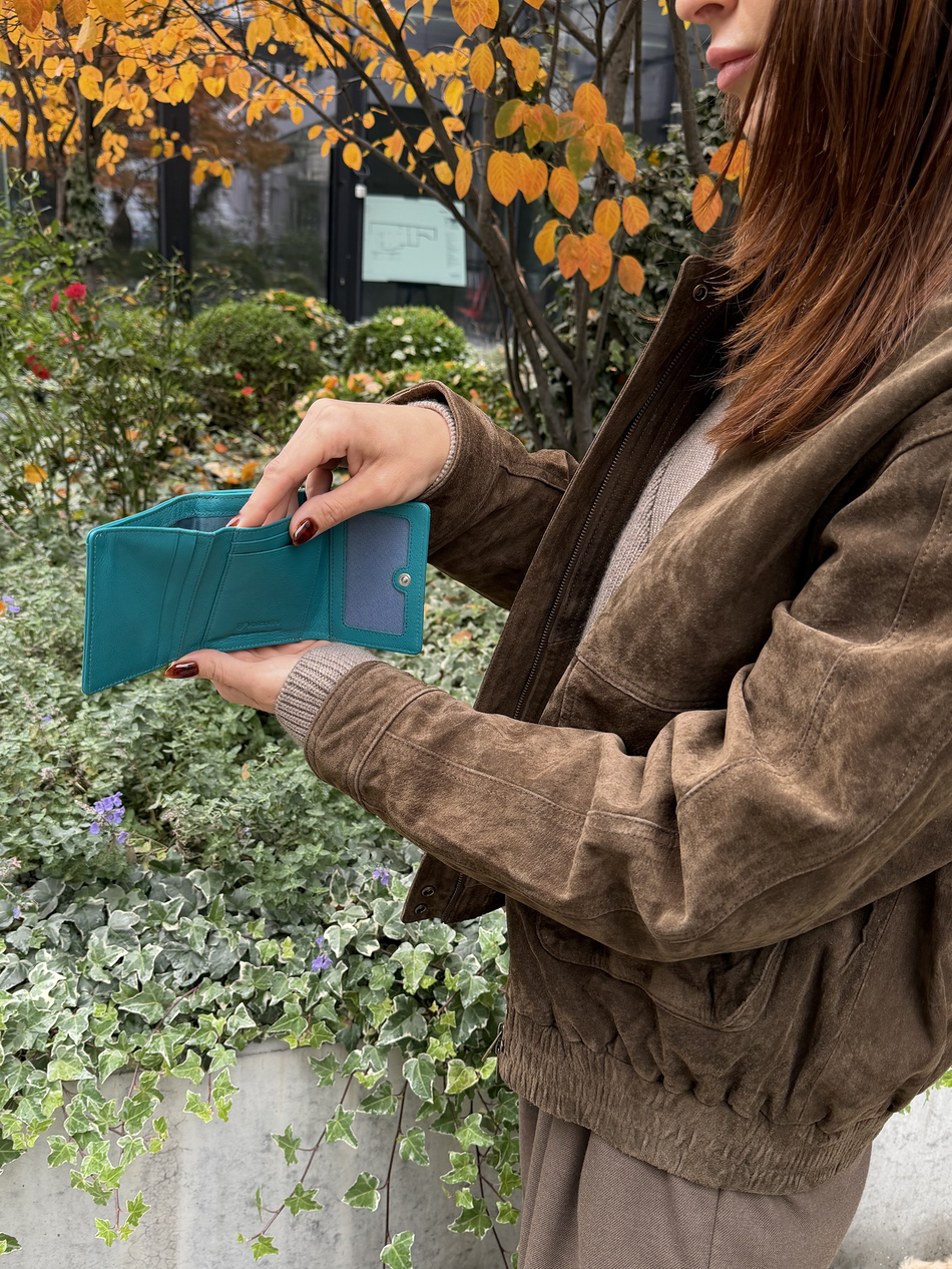 - Zielony portfel damski wykonany ze skóry naturalnej od Valentini.