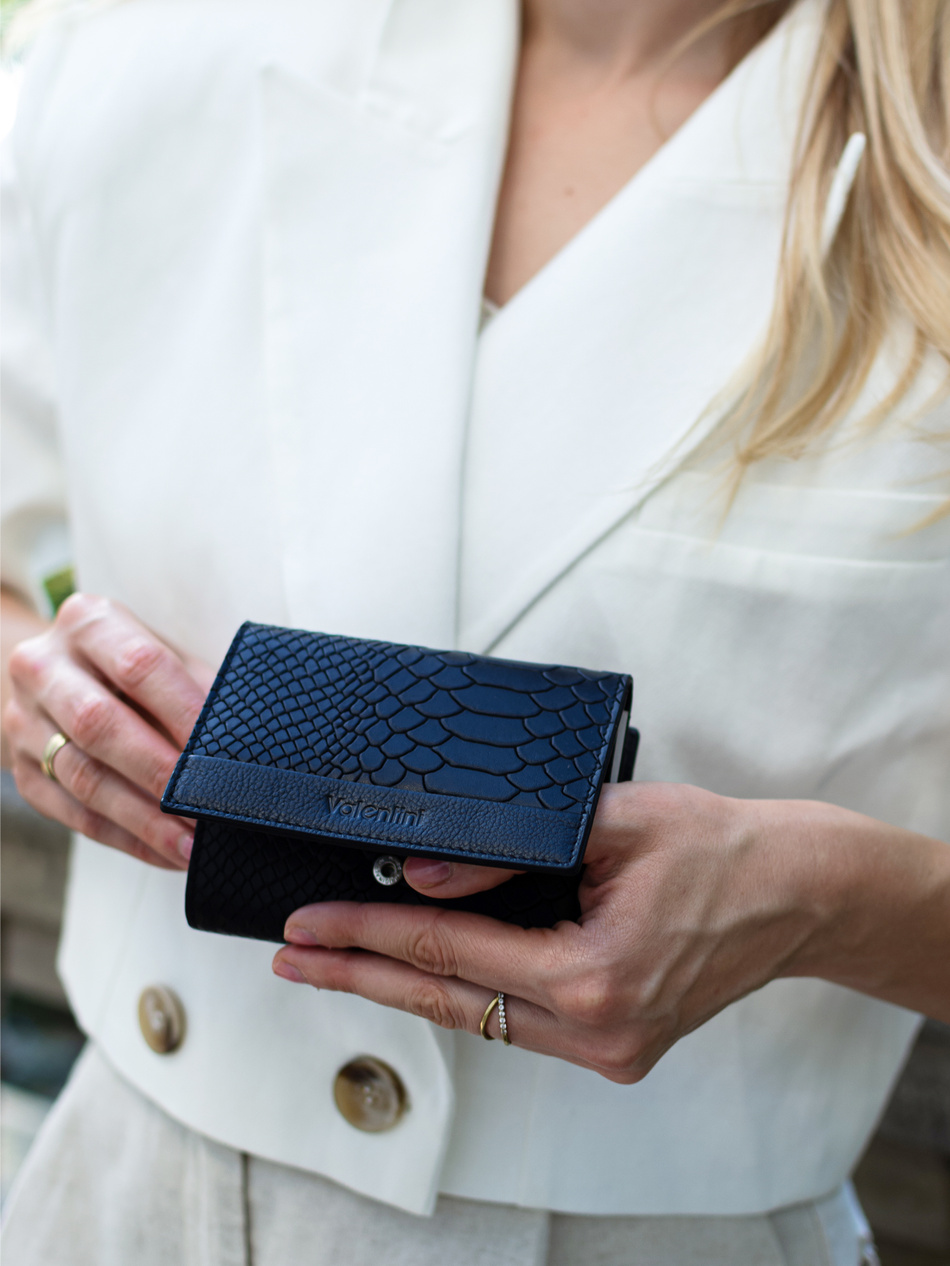 - Mały portfel damski wykonany ze skóry naturalnej od Valentini z kolekcji Caimani to idealny wybór dla kobiet, które cenią sobie połączenie stylu, bezpieczeństwa i funkcjonalności.