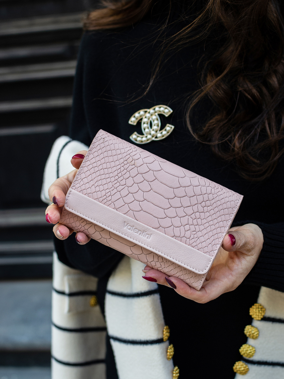 Portfel Valentini, o wymiarach 15 x 9,5 cm, idealnie łączy kompaktowe rozmiary z praktyczną funkcjonalnością. Jego rozmiar jest idealny do codziennego użytku, mieszcząc się w większości torebek, a jednocześnie oferując wystarczająco dużo miejsca na Twoje niezbędne przedmioty.